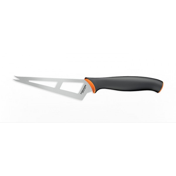 Cutitul pentru branza, Fiskars este un cutit cu maner Softgrip pentru o prindere sigura. Decupajele din interiorul lamei nu permit ca branza sa se lipeasca de lama.